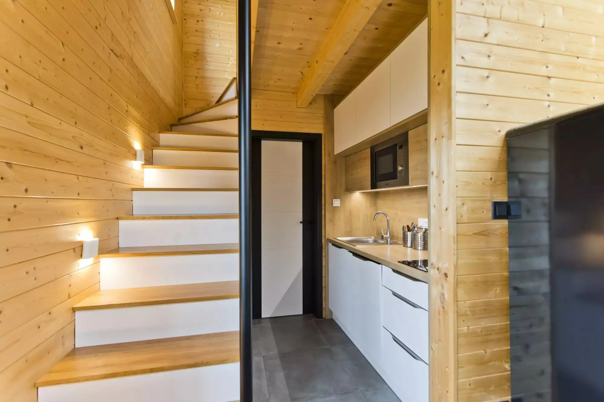 Digitálně řízená klimatizace do horkých dnů a krbová kamna s nachystaným suchým dřevem pro ty chladnější. K tomu moderní koupelna se sprchovým koutem a vyhřívanou podlahou.